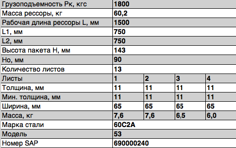 | Наименование | Рессора ГАЗ-3307,3309,ГАЗон Next задняя (13 листов) L=1600мм ЧМЗ |