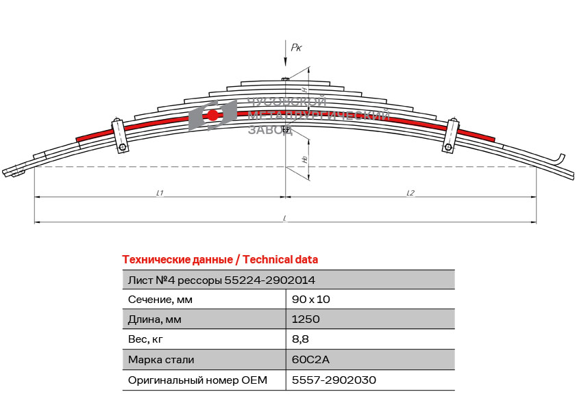 55572902030 OMK AUTO Лист рессоры УРАЛ-5557 передней №4 с накладкой L=1250мм ЧМЗ