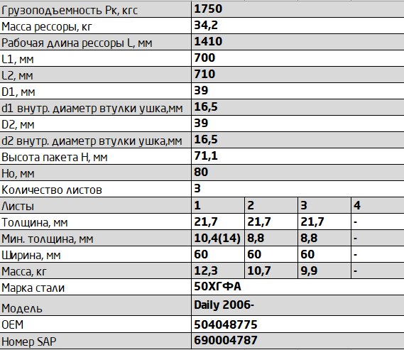 | Наименование | Рессора IVECO Daily 50C11-50C21,50C80 задняя (3 листа) c с/б L=1440мм ЧМЗ SPRING |