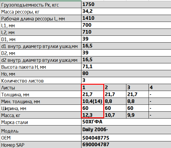 | Наименование | лист коренной задний! №1 60х23, L=1415\ Iveco |