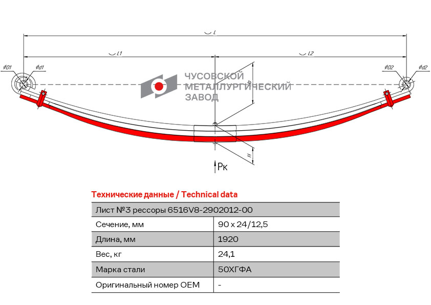 | Наименование | Лист рессоры МАЗ-6516,6430С передней №3 с хомутами L=1920мм ЧМЗ |