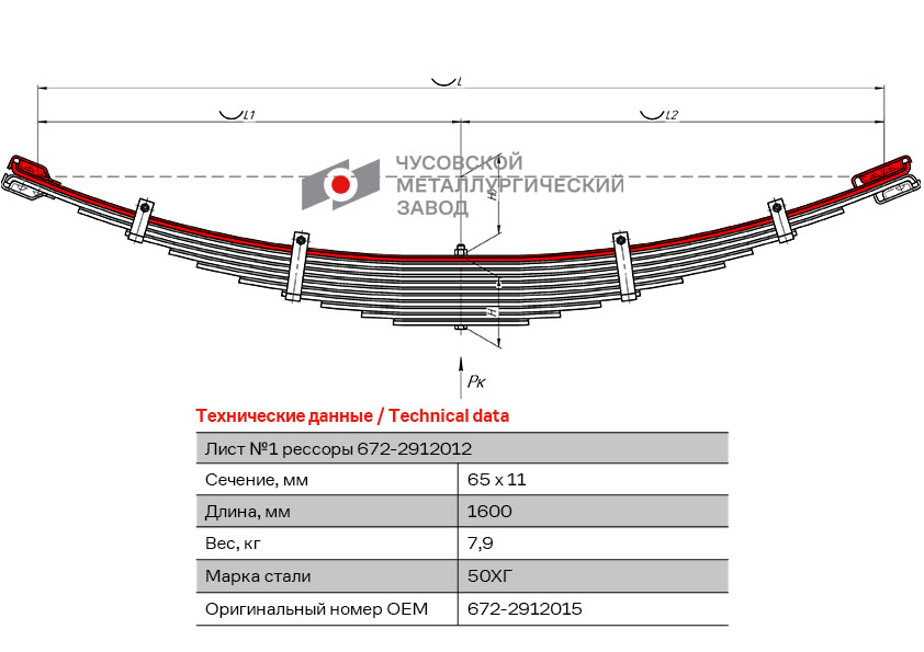 6722912015 OMK AUTO лист рессоры! №1 задняя L=1600mm (11-ти листовая)\ ПАЗ 3205, 672, 3201