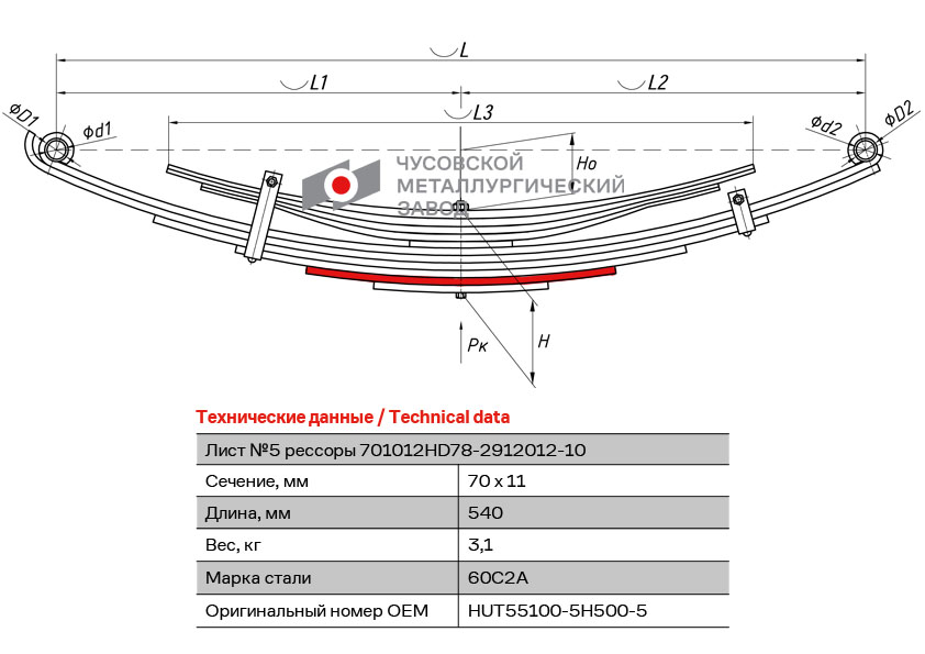 701012HD782912105 OMK AUTO лист рессоры! задней №5 \ Hyundai HD65/HD72/HD78