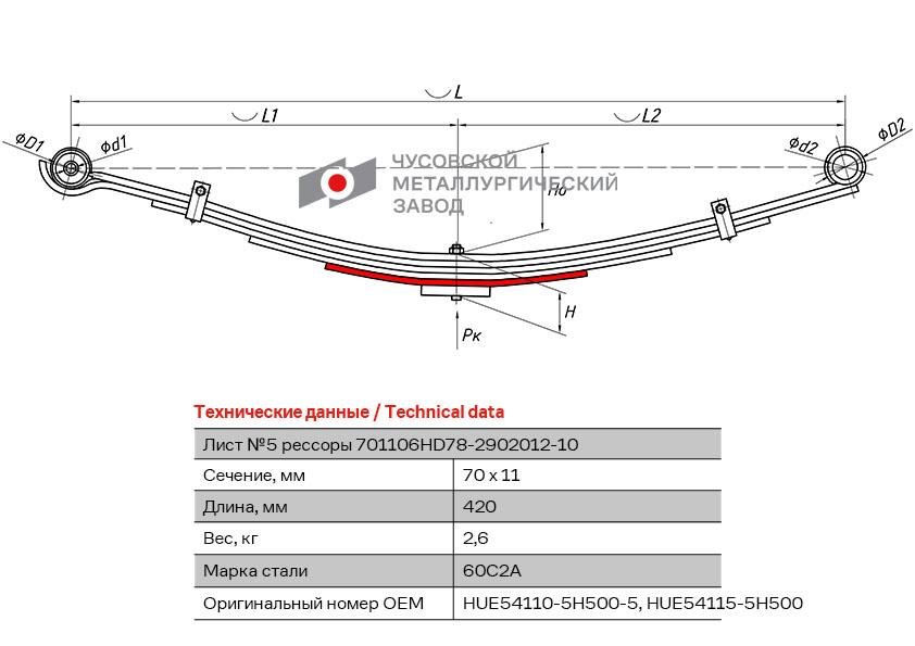 | Наименование | лист рессоры! №5\ HYUNDAI HD 65,72,82 |