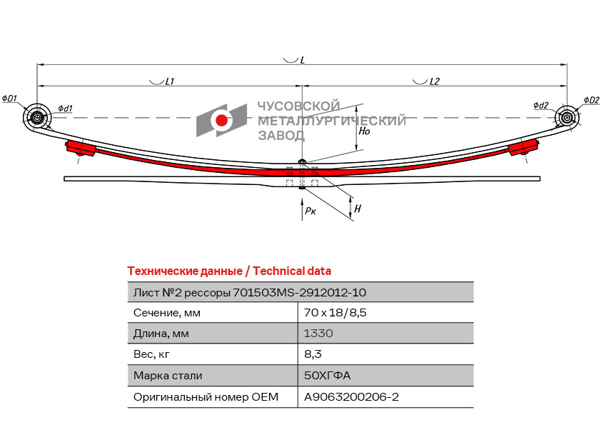 701503MS-2912102-10 OMK AUTO Лист рессоры MERCEDES Sprinter 509-519 VW Crafter (06-15) задней №2 (3 листа) L=