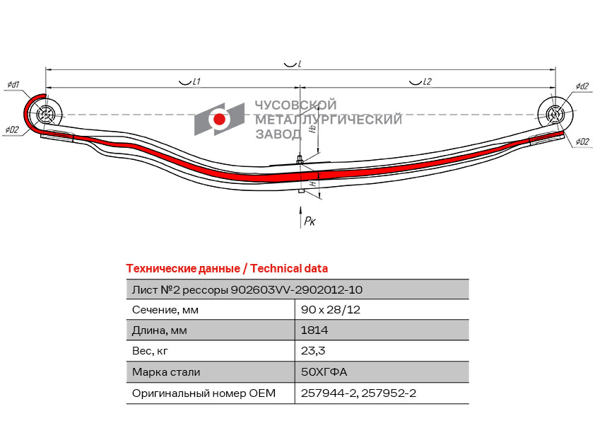 902603VV2902102 OMK AUTO лист подкоренной! рессоры передней №2 90х26 L=1814\ Volvo