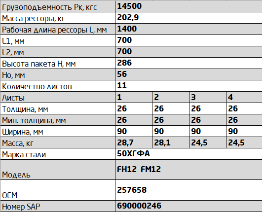 | Наименование | Рессора VOLVO FH12,FM12,FM10 задняя (11 листов) L=1660мм ЧМЗ SPRINGER |