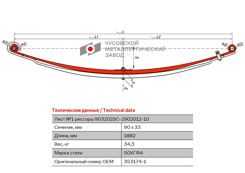903202SC290210110 OMK AUTO Лист рессоры SCANIA Series 3 (87-96) 4 (94-08) P,G,R,T (03-) передней №1 (2 лист