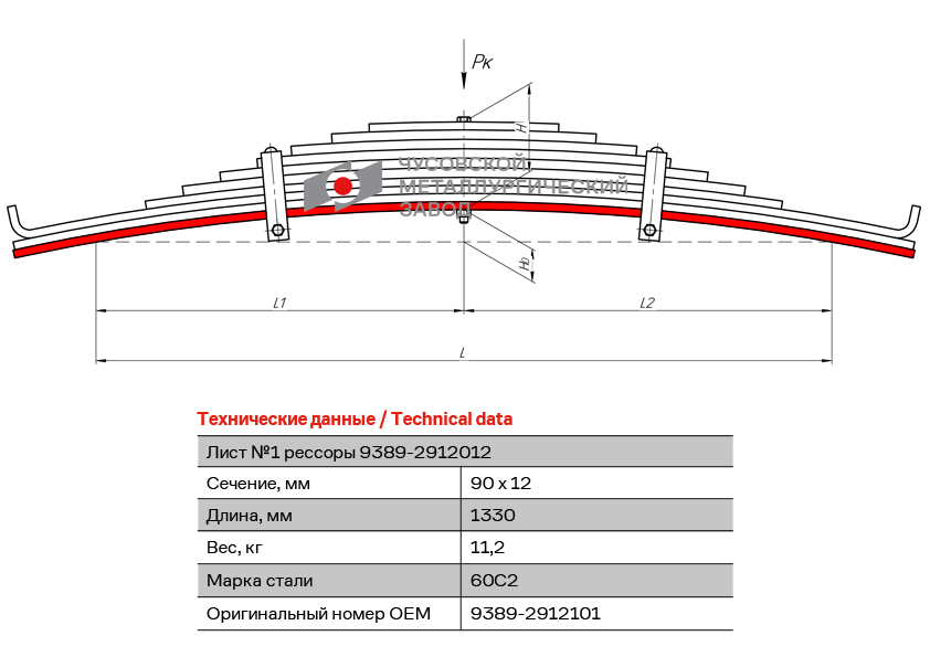 | Наименование | Лист рессоры МАЗ-9389 задней №1,2 полуприцепа L=1330мм ЧМЗ |