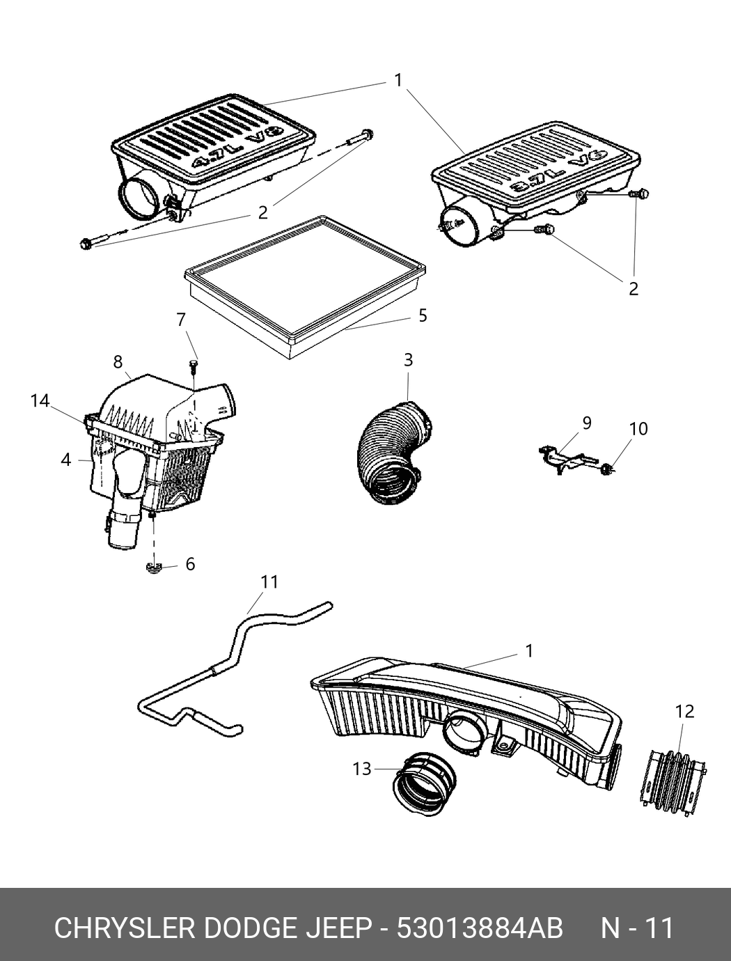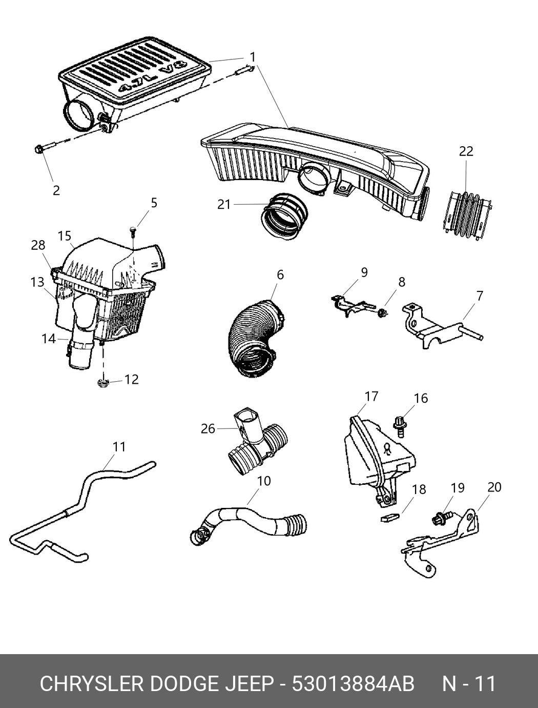 53013 884AB CHRYSLER 53013884AB Трубка воздушная