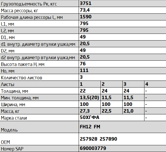 | Наименование | Рессора Volvo о.н. 257890 |