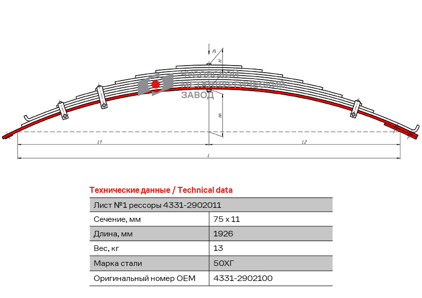 | Наименование | Лист №1 передней рессоры ЗИЛ-4331 L-1920мм (Чусовой) |