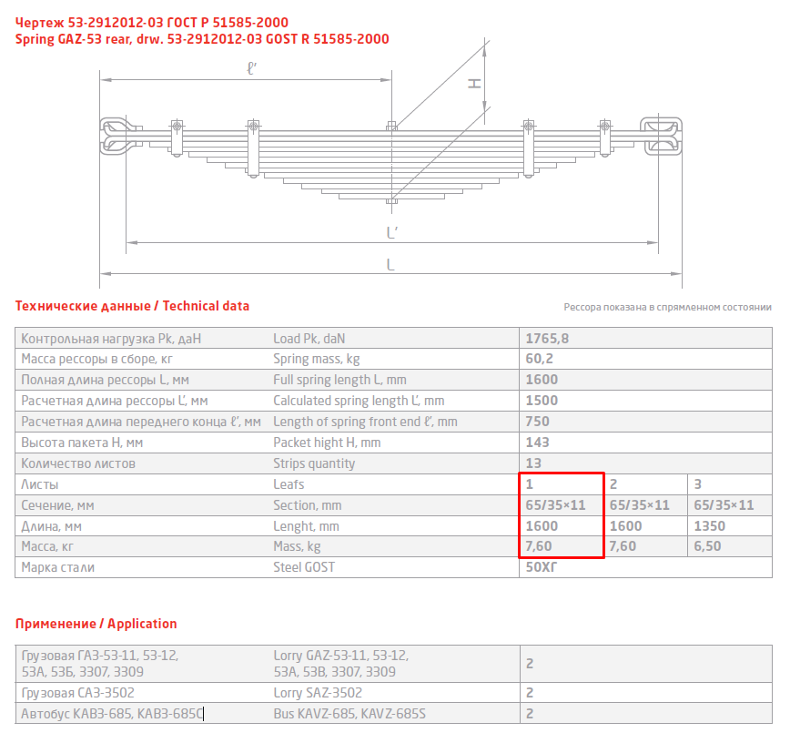 | Наименование | Лист № 1 рессоры задней ГАЗ 53, ГАЗ 3307, ГАЗон Next корен.верх. |