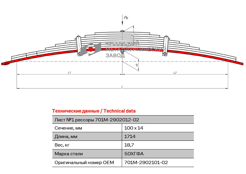 701M290210102 OMK AUTO лист коренной перед.! №1 100х14 L=1714 Трактор