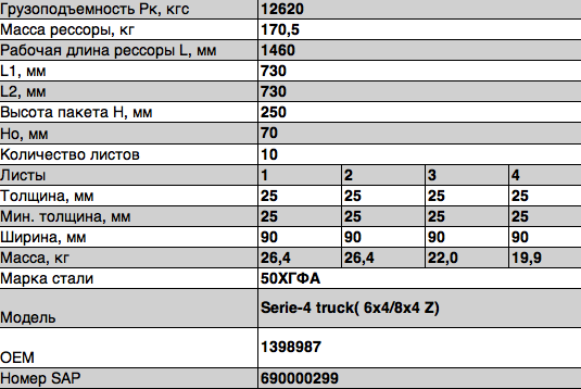 | Наименование | Рессора задняя 10-ти листовая Scania 144C 6X4 |