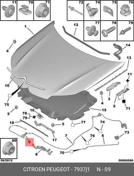 7937 J1 CITROEN PEUGEOT трос капота!\ Citroen C6/C8, Peugeot