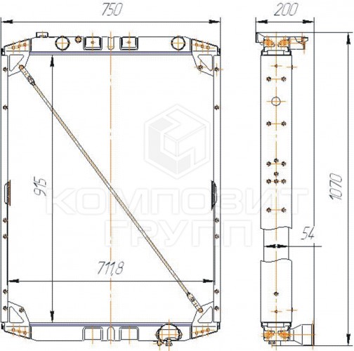 14111301010 KOMPOZIT GROUP Радиатор МАЗ-533608,543208,544008,5440А8,630308,651608,642208 медный 3-х рядный