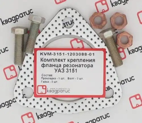 KVM-3151-1203088-01 KVADRATIS Прокладка УАЗ резонатора комплект (прокл.,болты,гайки) КВАДРАТИС