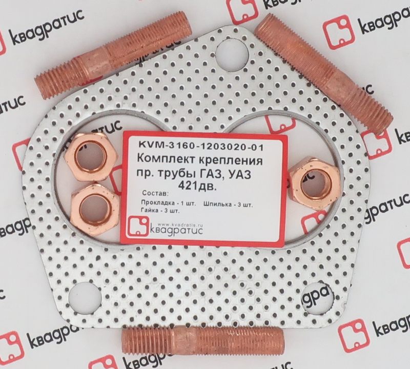 KVM-3160-1203020-01 KVADRATIS Прокладка УАЗ-3160 трубы приемной комплект (прокл.,шпильки,гайки) КВАДРАТИС