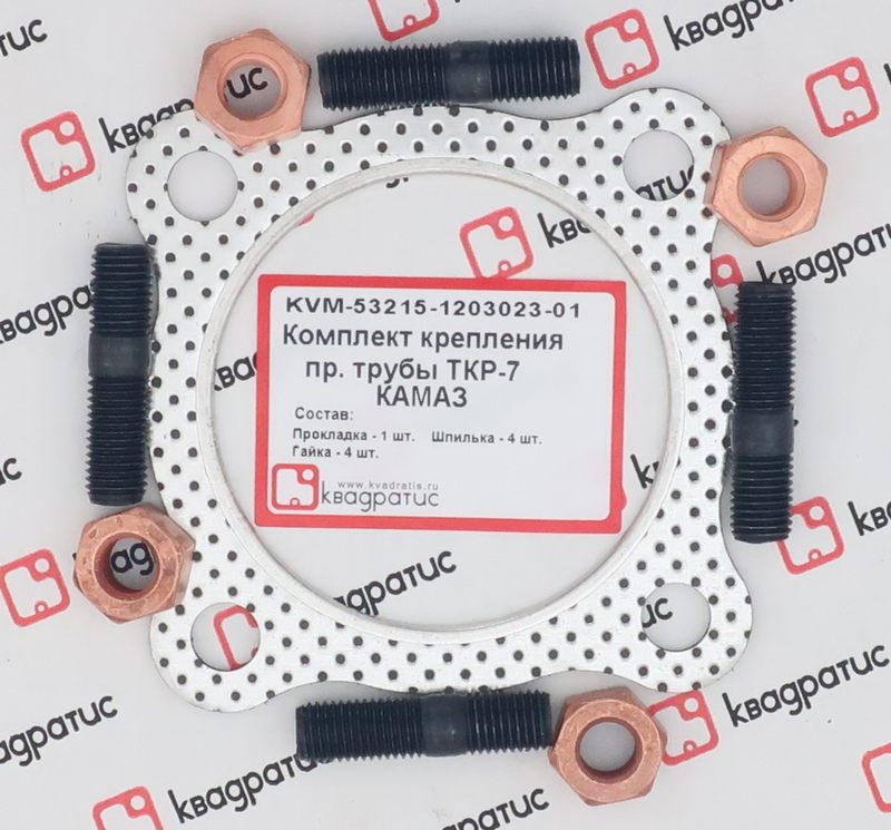 KVM-53215-1203023-01 KVADRATIS Прокладка КАМАЗ-ЕВРО приемного патрубка комплект (прокл.,шпильки,гайки,шайбы) КВ