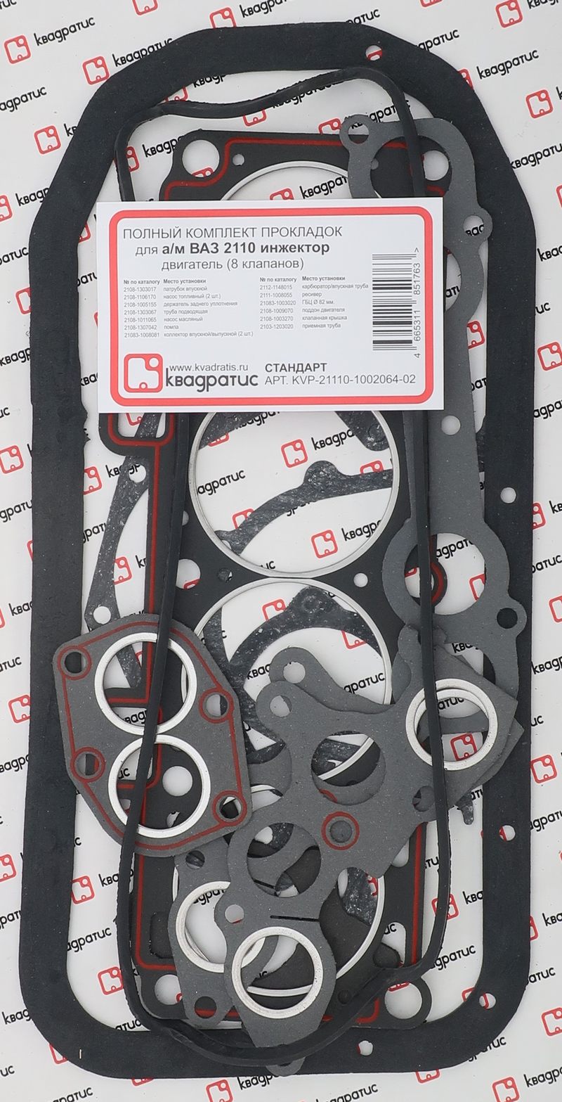 KVP-21110-1002064-02 KVADRATIS Набор прокладок двигателя для а/м ВАЗ 2110 полный (инжектор, 8 клап.) "КВАДРАТИС