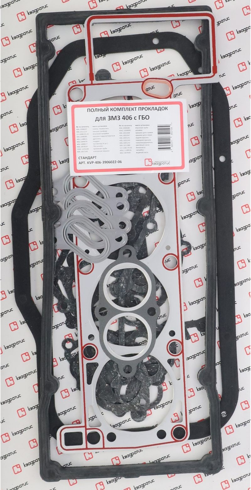 KVP-406-3906022-06 KVADRATIS Набор прокладок двигателя для а/м ГАЗ 406 дв. (полный) с ГБО Стандарт "КВАДРАТИС