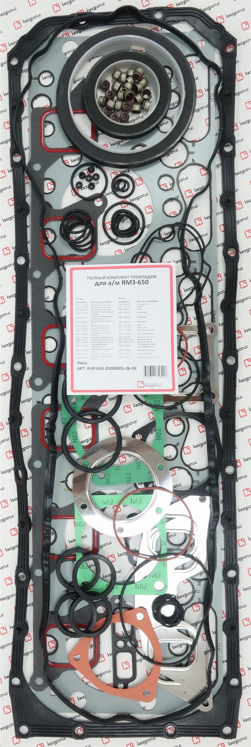 KVP-650-20000005-06-03 KVADRATIS Прокладка двигателя ЯМЗ-650.10 комплект верхний (34 наименования) КВАДРАТИС