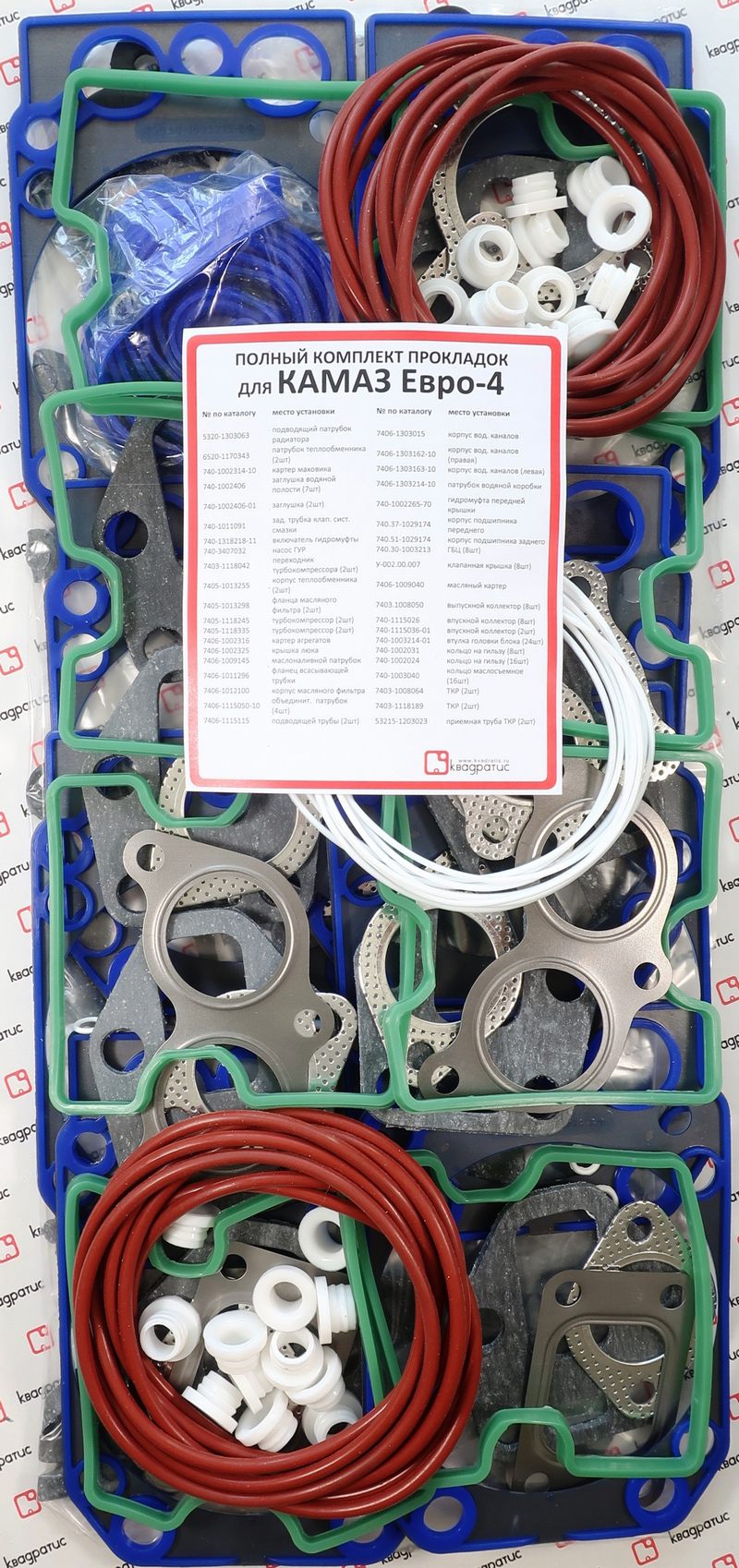 | Наименование | 740.70-1002000 -р/к прокладки двигателя КАМАЗ-ЕВРО-4 полный комплект КВАДРАТИС |