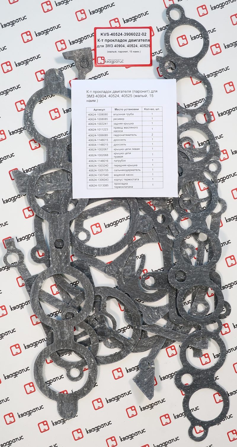 KVS-40524-3906022-02 KVADRATIS Прокладка двигателя ЗМЗ-405,409 ЕВРО-3 малый комплект (15 наименований) КВАДРАТИ