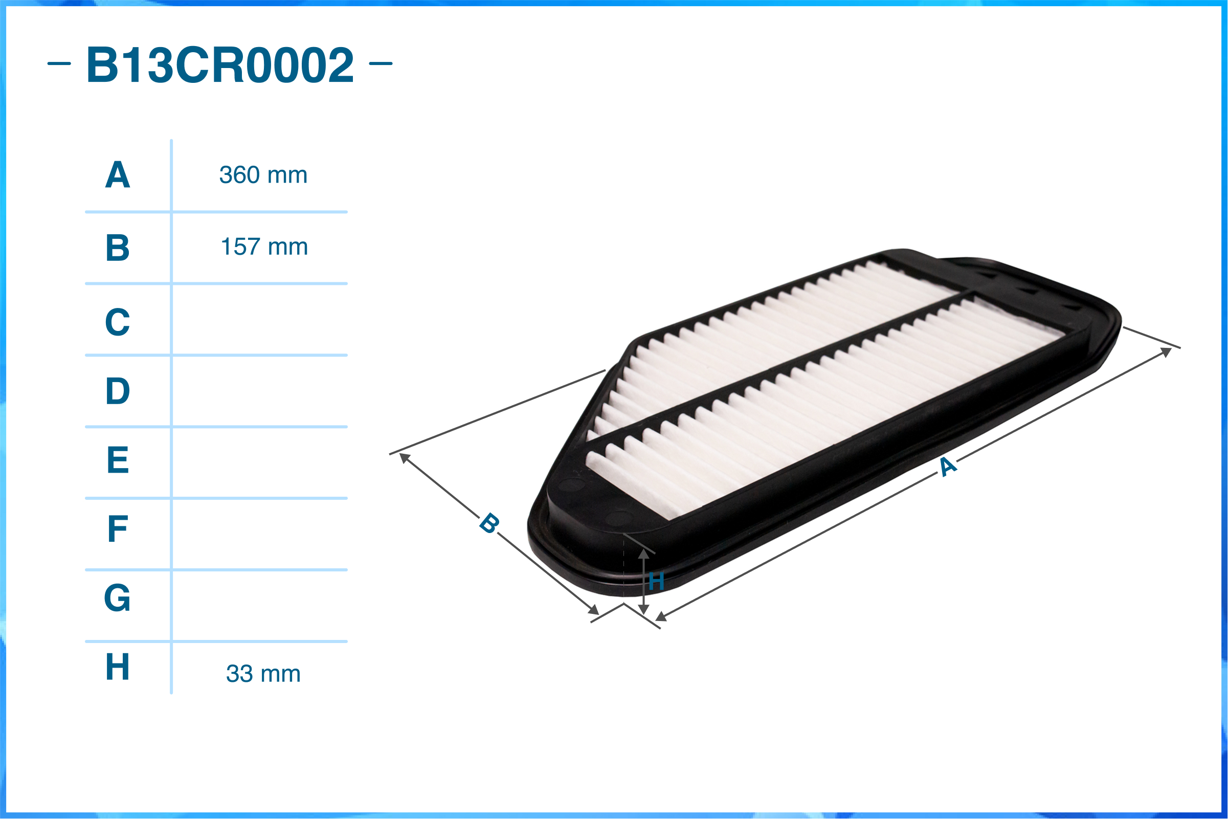 | Наименование | Фильтр воздушный B13CR0002 |