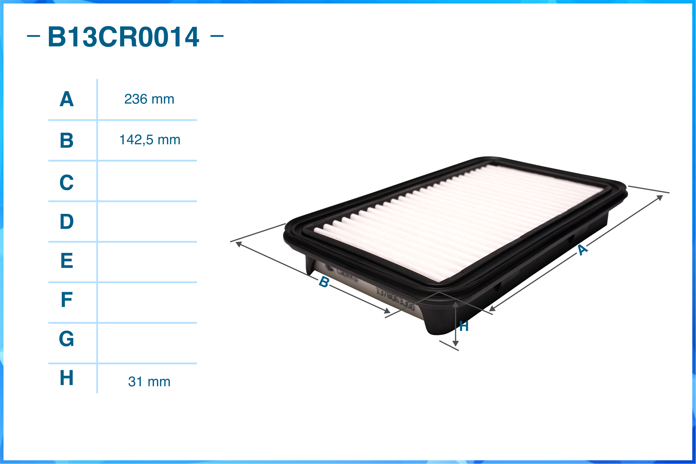 | Наименование | Фильтр воздушный B13CR0014 |
