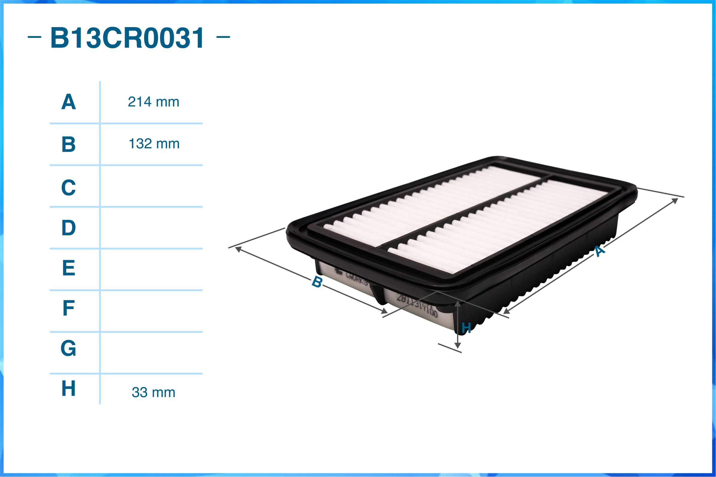 | Наименование | Фильтр воздушный B13CR0031 |