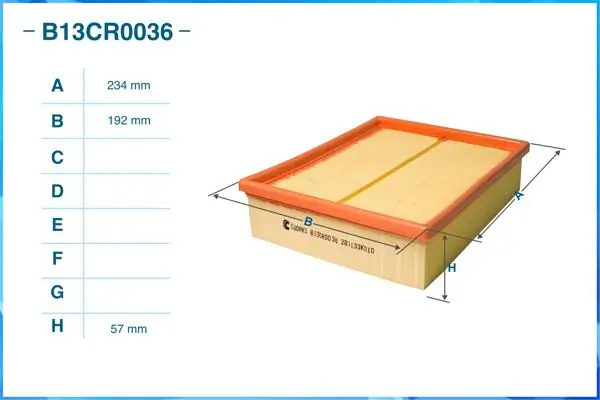| Наименование | Фильтр воздушный B13CR0036 |
