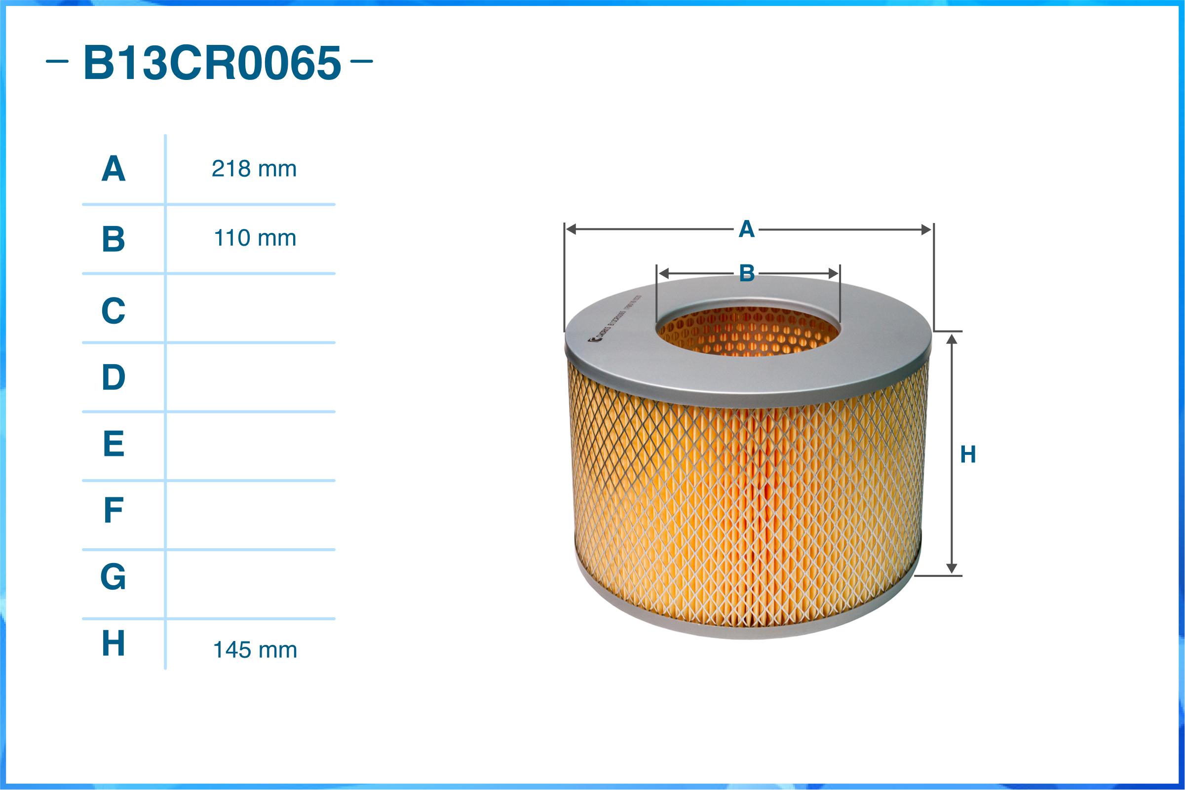 | Наименование | Фильтр воздушный B13CR0065 |