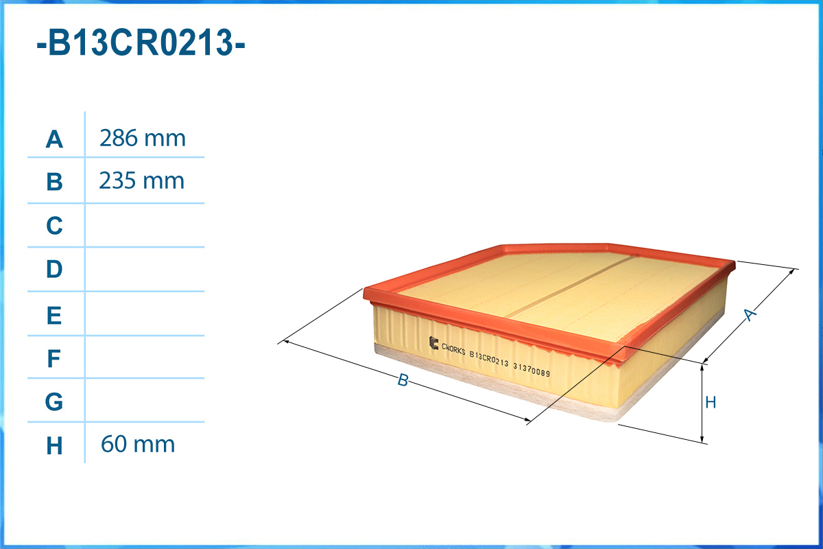 | Наименование | Фильтр воздушный B13CR0213 |