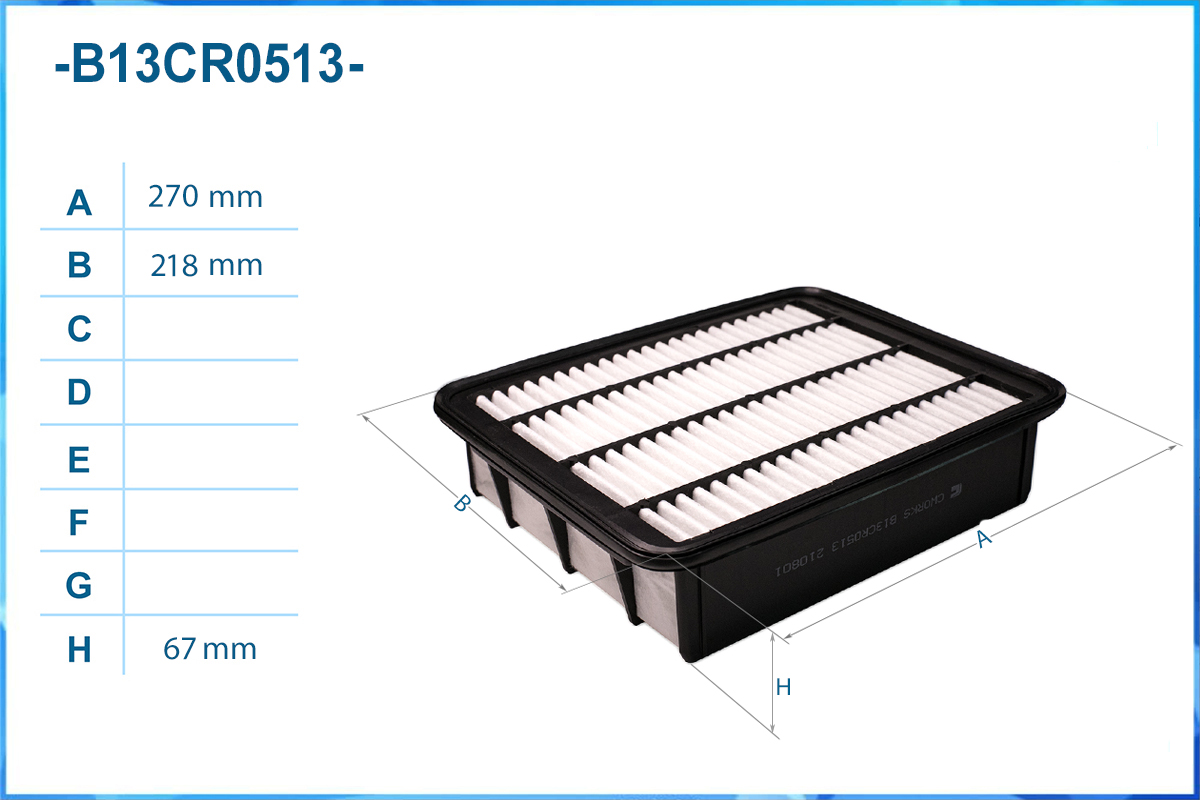 | Наименование | Фильтр воздушный B13CR0513 |