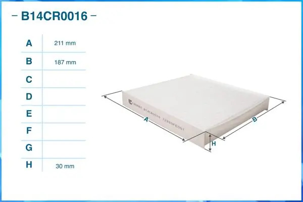 | Наименование | Фильтр салонный пылевой B14CR0016 |