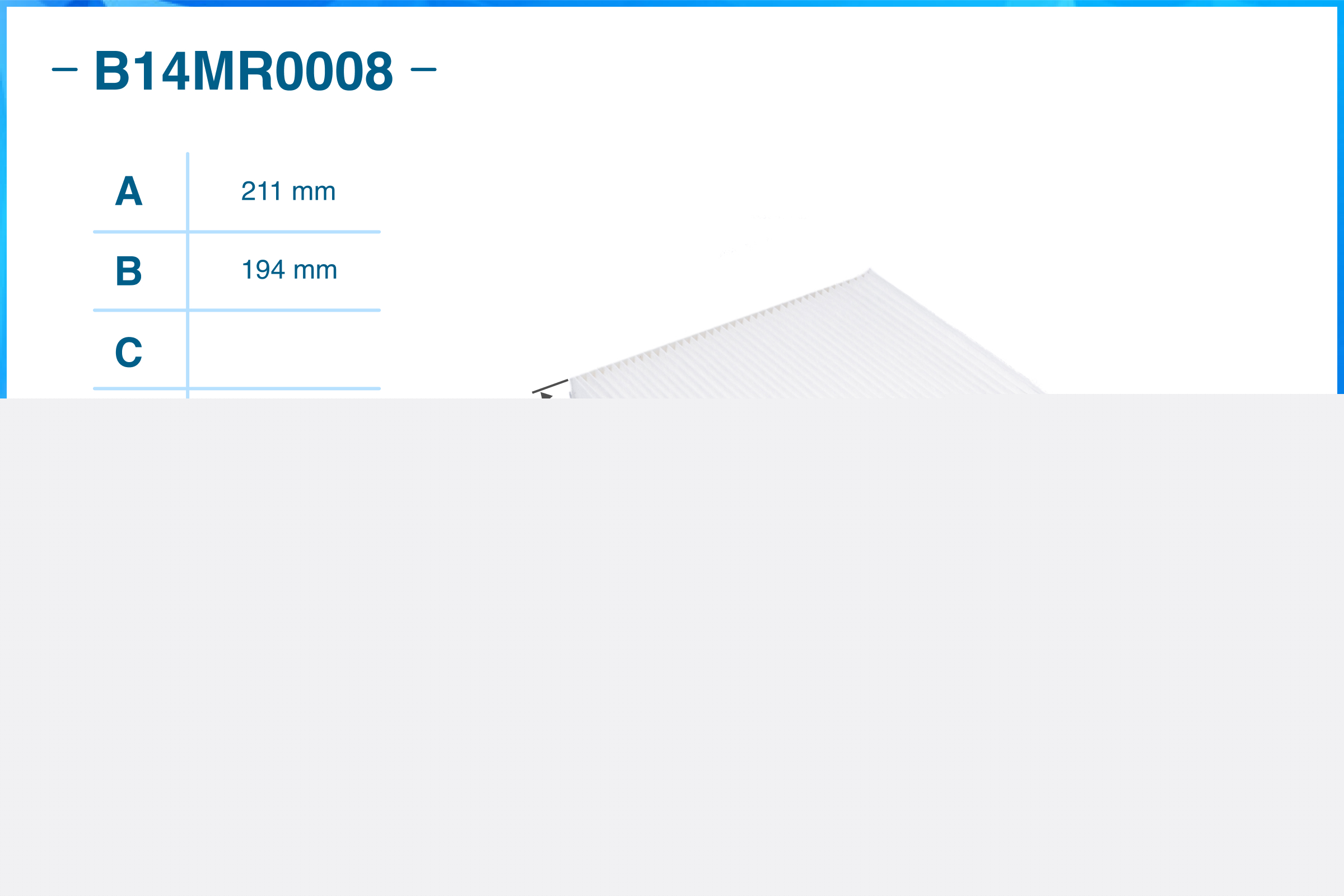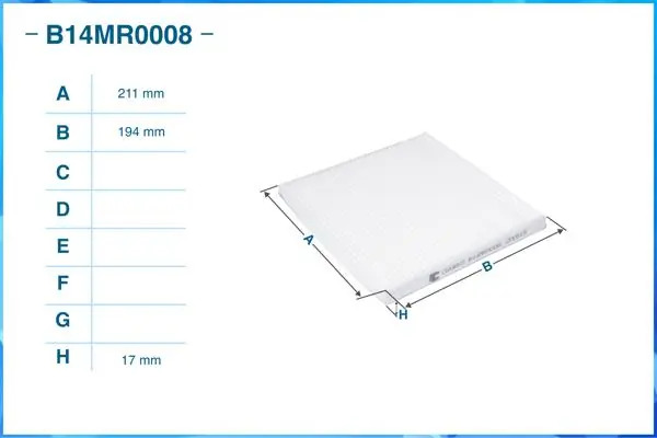 | Наименование | Фильтр салонный пылевой B14MR0008 |