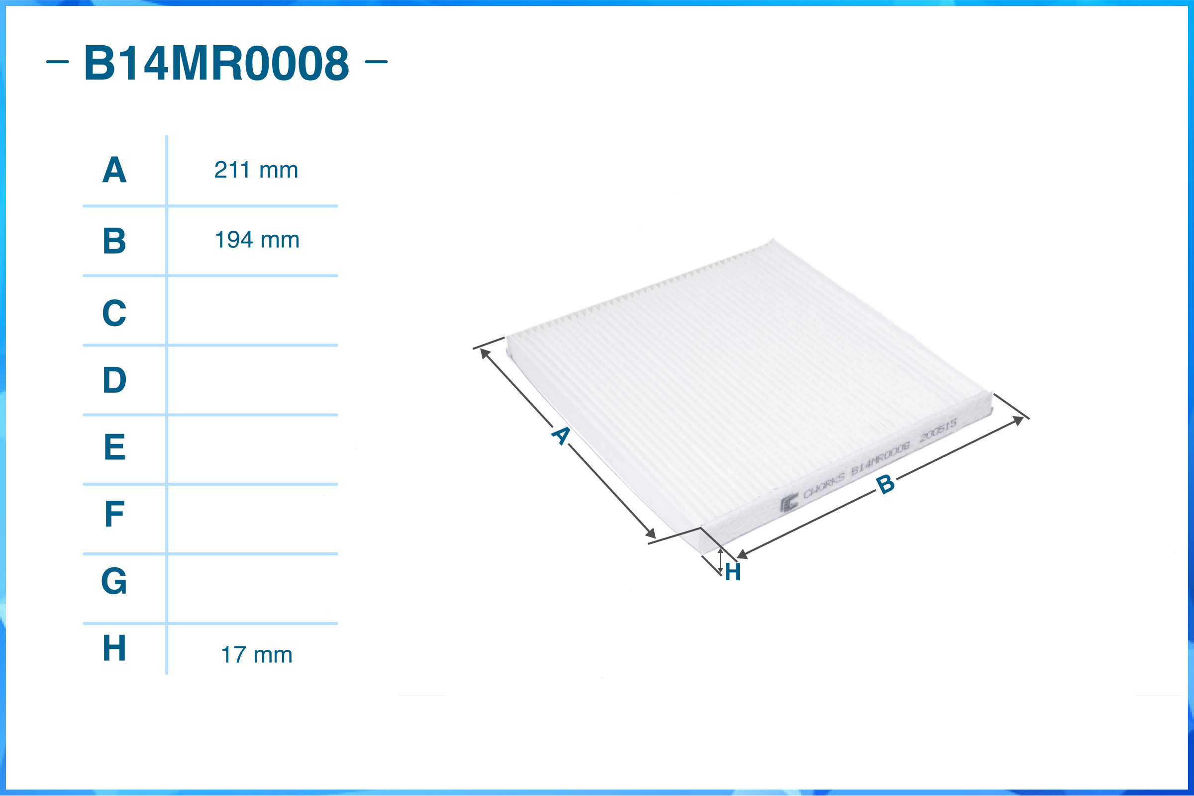 B14MR0008 CWORKS Фильтр салонный пылевой B14MR0008