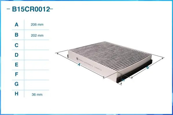 | Наименование | Фильтр салонный угольный B15CR0012 |