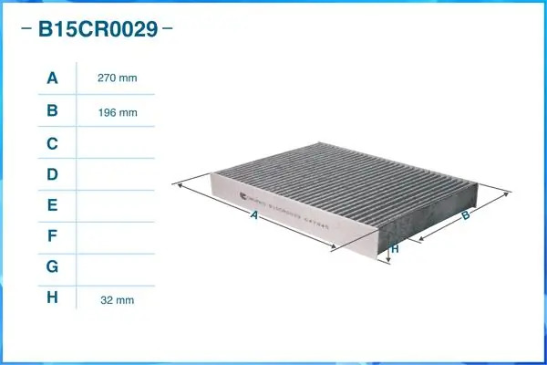 | Наименование | Фильтр салонный угольный B15CR0029 |