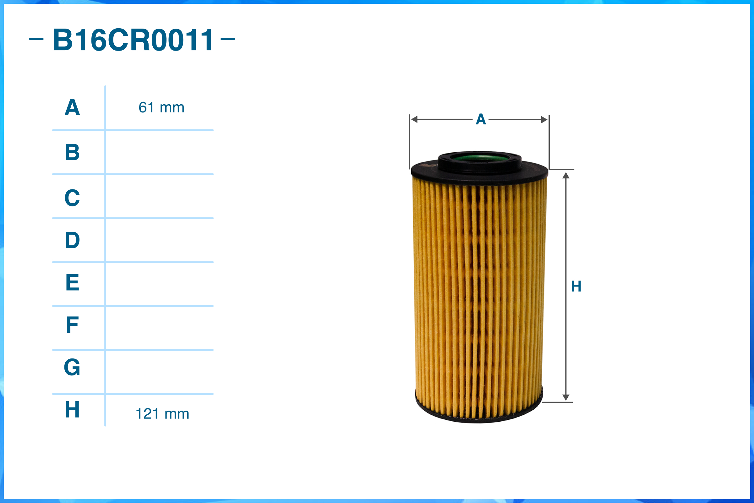 | Наименование | Фильтр масляный элемент B16CR0011 |