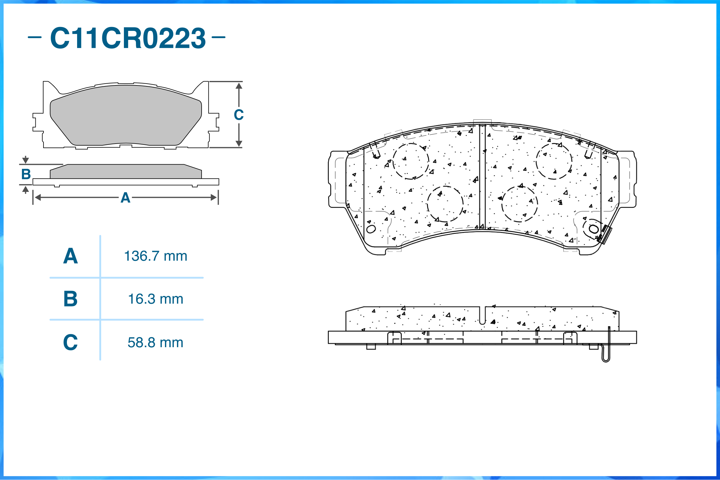 | Наименование | Тормозные колодки передние Low Metallic C11CR0223 |