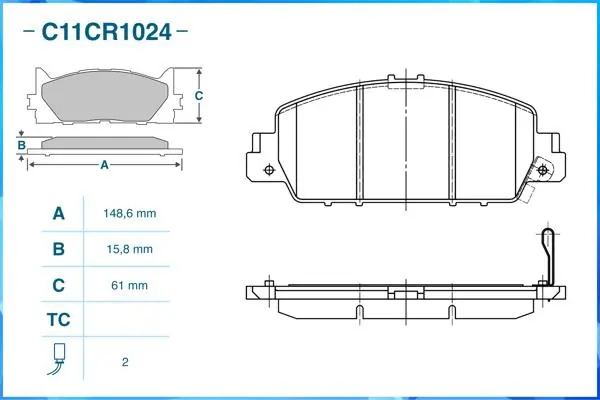 | Наименование | Тормозные колодки передние Low Metallic C11CR1024 |