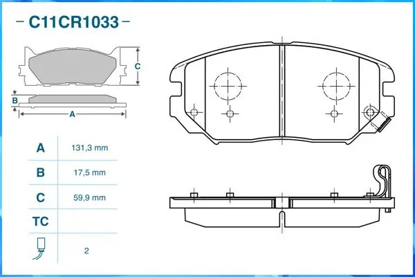 | Наименование | Тормозные колодки передние Low Metallic C11CR1033 |