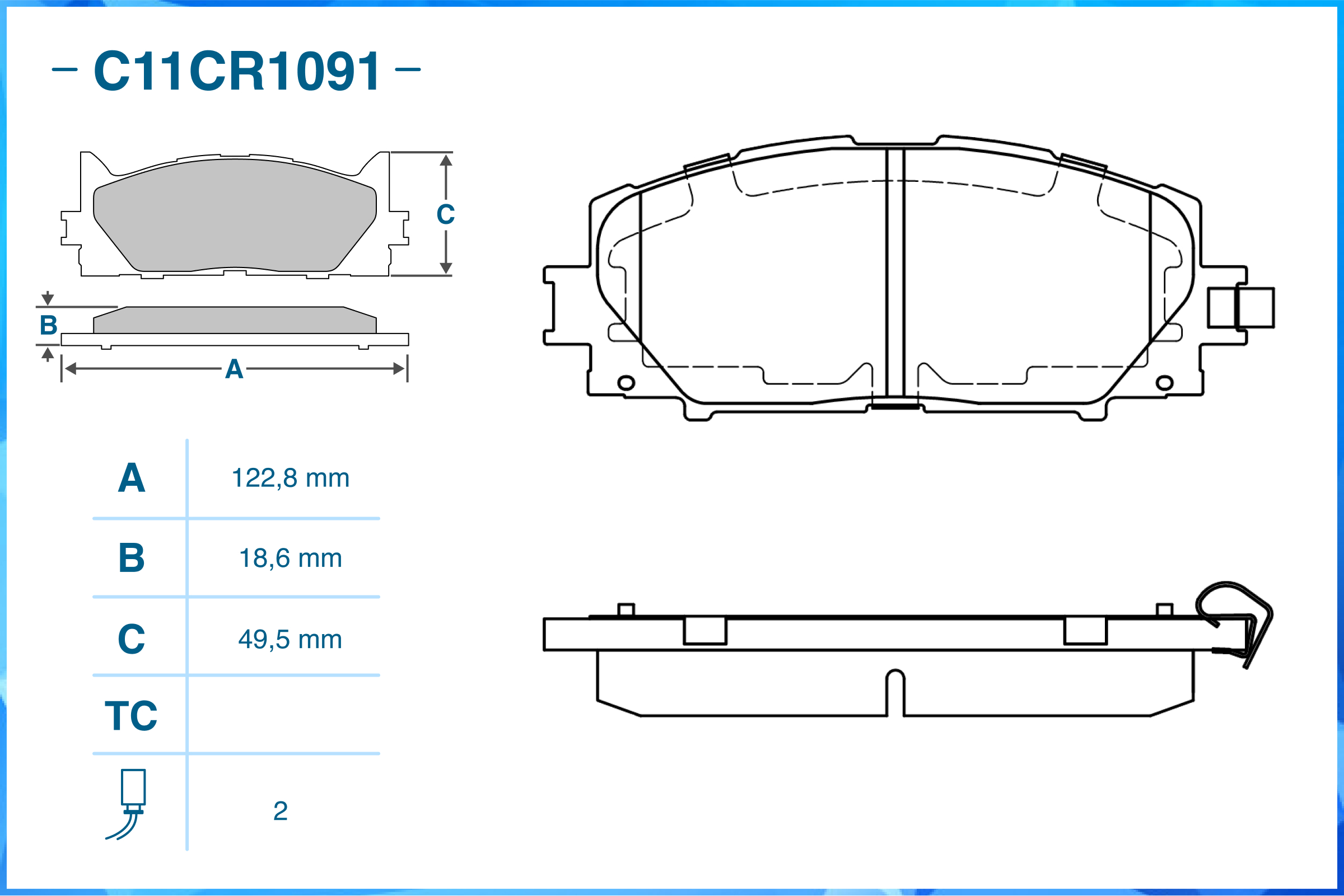 | Наименование | Тормозные колодки передние Low Metallic C11CR1091 |