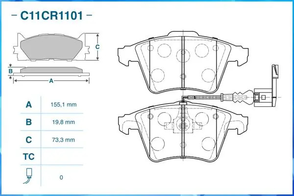 | Наименование | Тормозные колодки передние Low Metallic C11CR1101 |