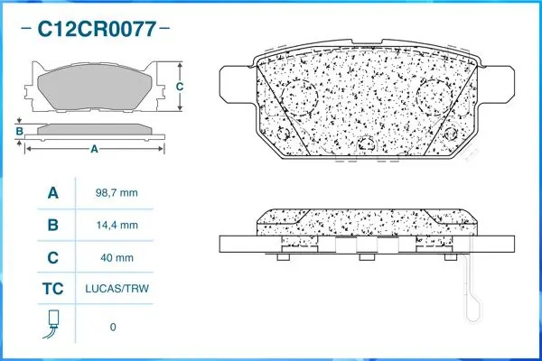 | Наименование | Тормозные колодки задние Low Metallic C12CR0077 |