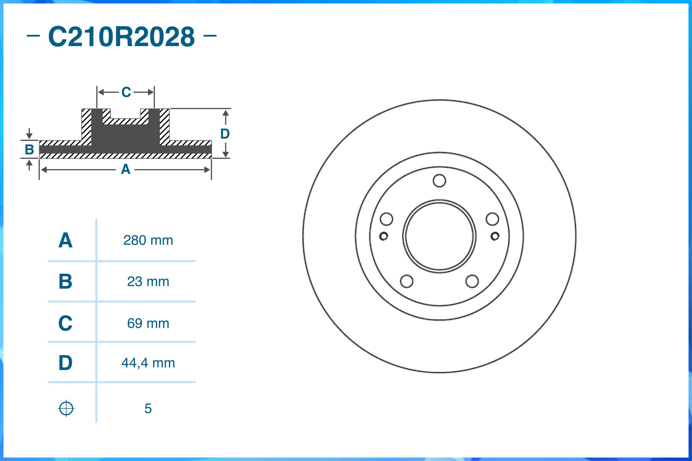 | Наименование | Тормозной диск передний C210R2028 |