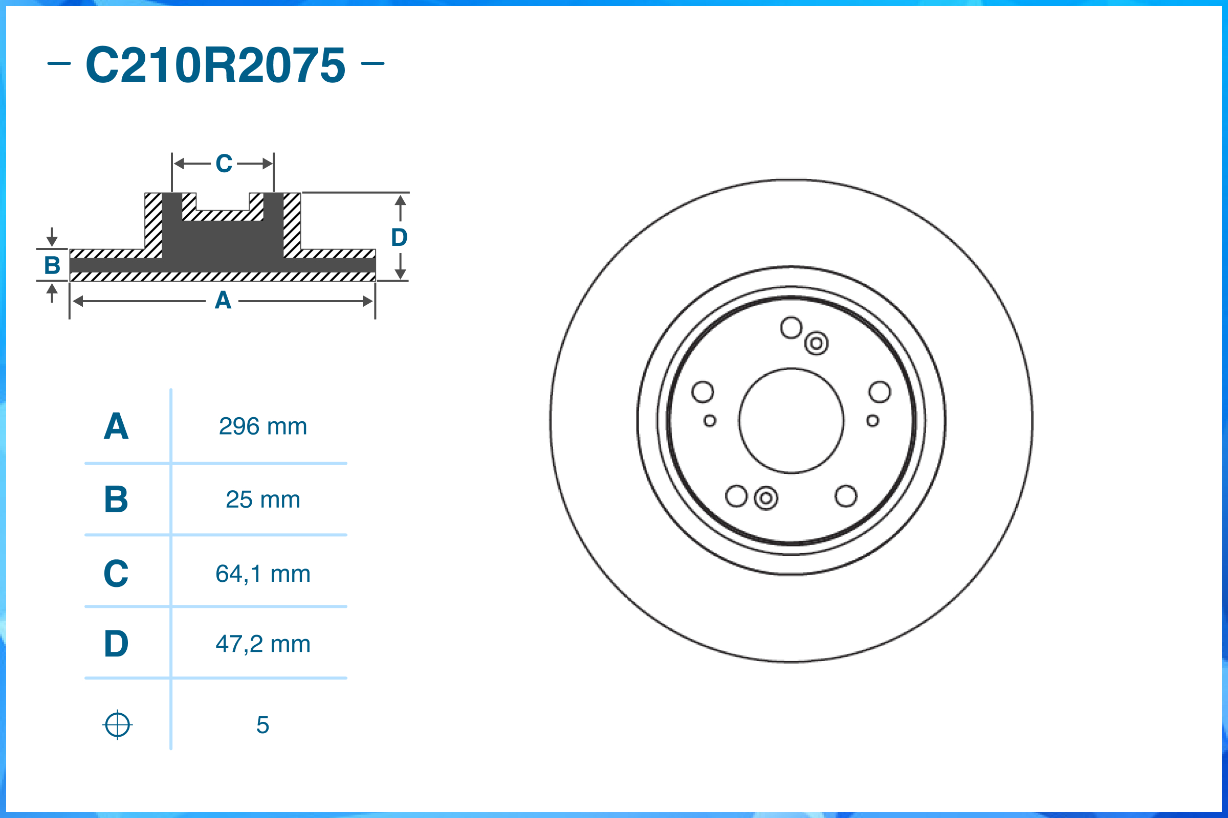 | Наименование | Тормозной диск передний C210R2075 |